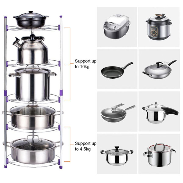 The 5-tier pot rack measures 39.92 x 13.78 inches, and the vertical design will maximize the use of floor space