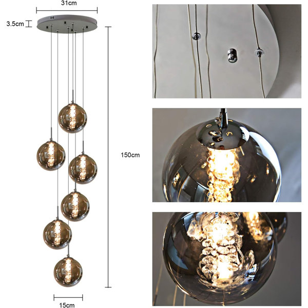 Nice light fitting. You can alter the length of each light fitting by squeezing the rubber teat at the top. The crystals inside the light fittings look a bit cheap and I missed reading/seeing this before buying, but the overall effect is good. Adds a lot of light. The bulbs are almost as expensive as the fitting itself!
