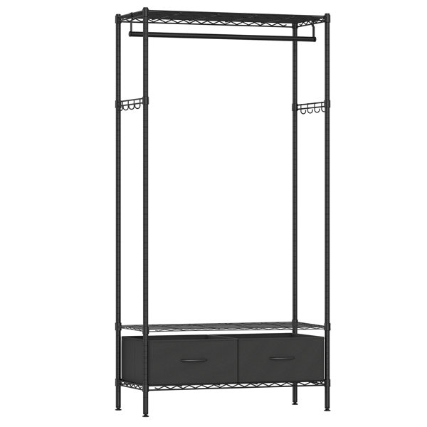 Specifications:Colour: Ink BlackMaterial: SteelProduct Size: 15.8"D x 35.4"W x 70.9''H (40 x 90 x 180 cm)Product Weight: 16.5 lb (7.5 kg)Max. Static Load Capacity of Hanging Rail: 55 lb (25 kg)Max. Static Load Capacity of Top Shelf: 33 lb (15 kg)Max. Static Load Capacity of Lower Shelf: 55 lb (25 kg)Max. Static Load Capacity per Drawer: 18.7 lb (8.5 kg)Max. Static Load Capacity per Hook: 2.2 lb (1 kg)Overall Max. Static Load Capacity: 198 lb (90 kg)Package Contents:1 x Portable Closet1 x Accessory Kit1 x InstructionsNotes:Distribute weight evenly and do not exceed static load capacity.