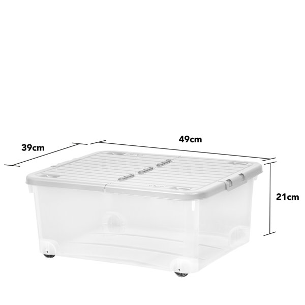 Brilliant for underbed storage. It's actually quite hard to find underbed storage with wheels and they are so handy as you can easily slide in and out. Covered to protect your clothes from dust. Ideal for gym gear.